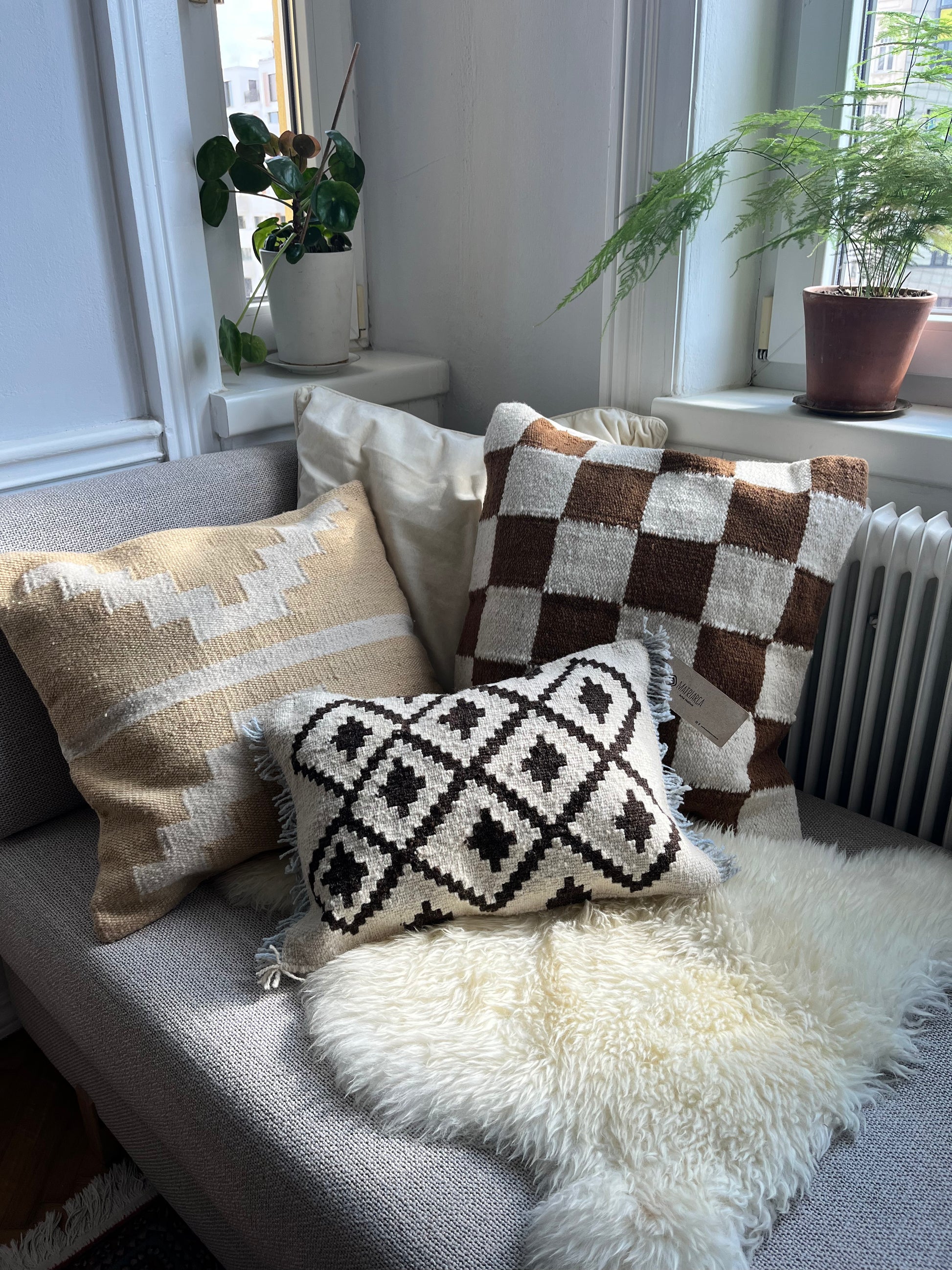 Small decorative cushion (cover) made of 100% vegetable-dyed new wool, handmade by Qomle'ec women of a women's cooperative in Northern Argentina