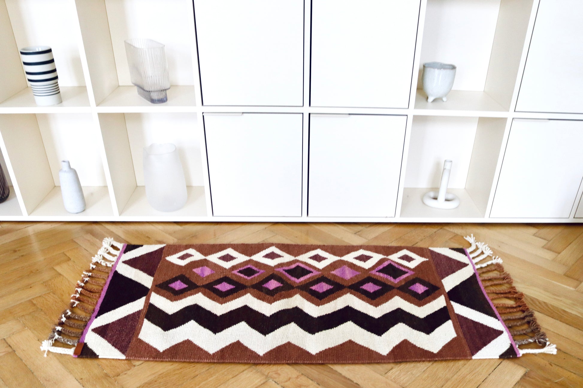 Care instructions: Clean the rug regularly on both sides with a soft-bristled vacuum cleaner (no brush). Do not handwash or machine wash, and do not place in direct sunlight to preserve the natural color. Minor stains can be gently wiped off with a cloth moistened with neutral soap. If cleaning is necessary due to larger stains, professional cleaning is recommended. We also recommend an anti-slip underlay (e.g., made of jute) to secure the rug to the floor and prevent slipping.