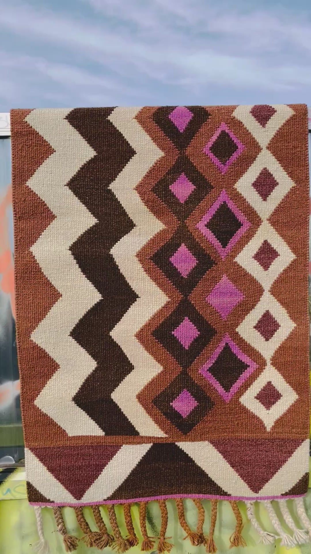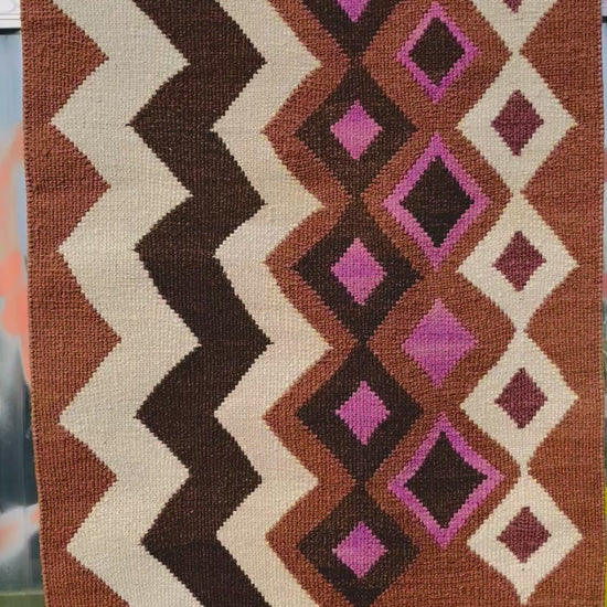 Handwoven rug from a women's cooperative by indigenous women of the Qomle'ec community in the Gran Chaco region of northern Argentina.